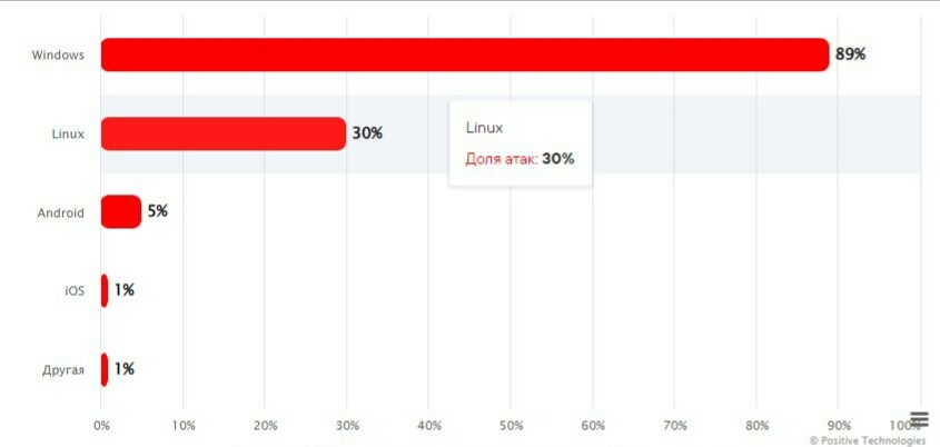 Рис. 1. Целевые ОС в атаках с использованием ВПО (доля атак)