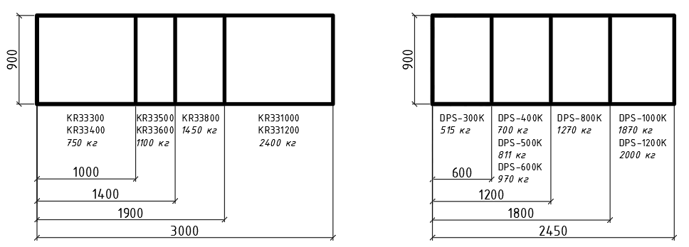 Рис. 2. Размеры ИБП Kehua Tech KR33 и Delta DPS различной мощности, мм