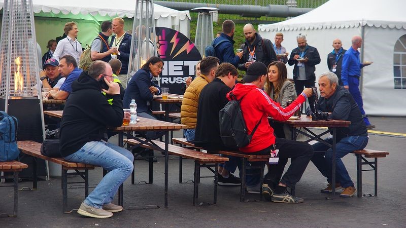 Очень вкусный узбекский плов из огромного чугунного казана, караоке, викторины, нескончаемый источник пива и долгие обсуждения за столиками у шатров партнеров и в курилке.