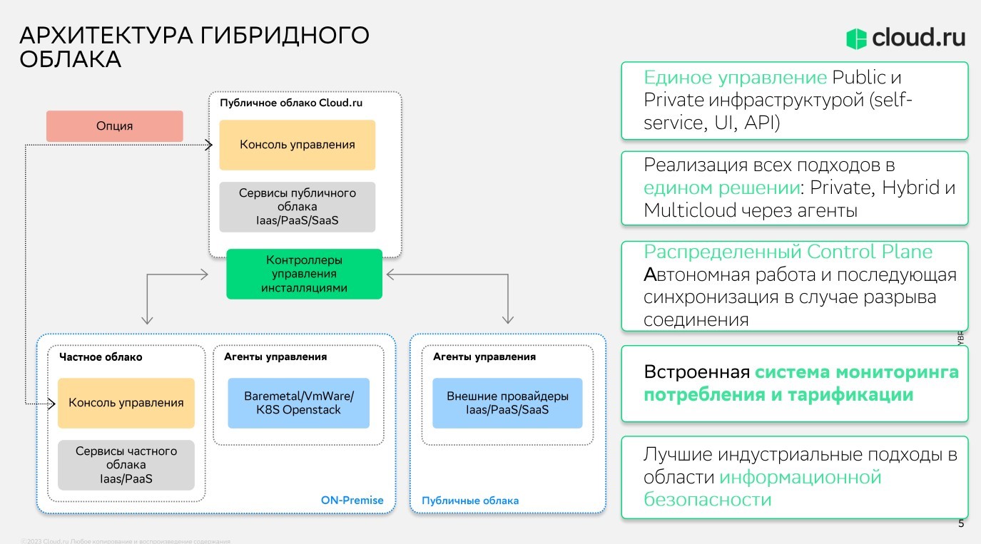 Рис. 2. Архитектура гибридного облака Cloud.ru