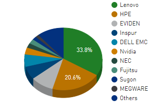 Доля вендоров вычислительных систем в числе суперкомпьютеров рейтинга Top500
