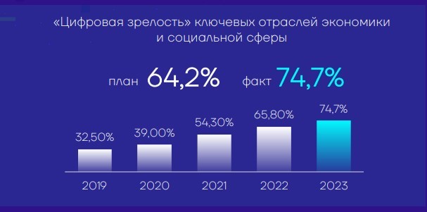 Информационные технологии давно стали неотъемлемой частью жизни страны, и их роль продолжает расти. В частности, как сообщил на проведенном в рамках выставки-форума Дне цифровизации вице-премьер Дмитрий Чернышенко, в 2023 г. число пользователей портала Госуслуг по сравнению с 2019 г. увеличилось почти вдвое и достигло 109 млн человек. А если в 2019 г. цифровая зрелость ключевых отраслей экономики составляла 32%, то сегодня она превышает 74%. При этом уровень проникновения цифровых технологий в бизнес-процессы в 2023 г. вырос на 10,5% больше запланированного.