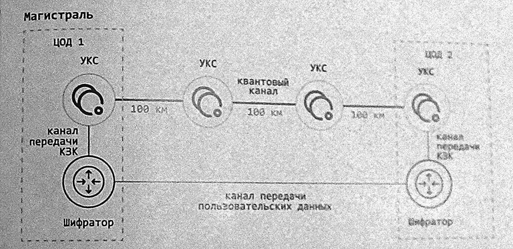 Сама магистраль (рис. 3) представляет собой цепочку устройств квантовой связи (УКС) – приемников и передатчиков квантовозащищенных ключей (КЗК). Ретрансляция происходит в имеющем приемник и передатчик ДПУ, в котором осуществляется перешифрование КЗК, передаваемого по сети. На каждый смартфон УКС не поставишь, но это и не обязательно – для передачи КЗК от ближайшего УКС до шифратора на устройстве пользователя можно использовать канал, защищенный постквантовыми алгоритмами шифрования.