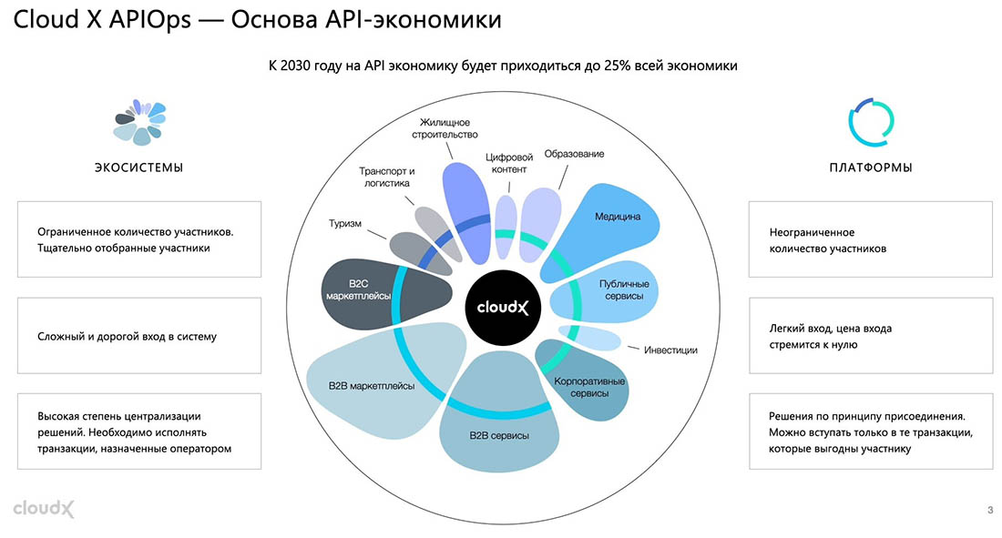 Современная цифровая экономика смещается в сторону следующего этапа развития – экономики API. Концепция предполагает создание экосистем обмена данными и цифровыми услугами между предприятиями. И это должны быть не только закрытые экосистемы, для ограниченного круга игроков, как правило, одной отрасли с жесткой централизацией управления, но и свободные открытые платформы для неограниченного числа участников. Такова, например, платформа кросс-отраслевого взаимодействия Cloud X API Hub. Обмен данными и услугами через API позволяет компаниям самых разных отраслей получить доступ к новым рынкам, маркетплейсам и облачным сервисам, ускорить оборот продукции, повысить удовлетворенность потребителей.