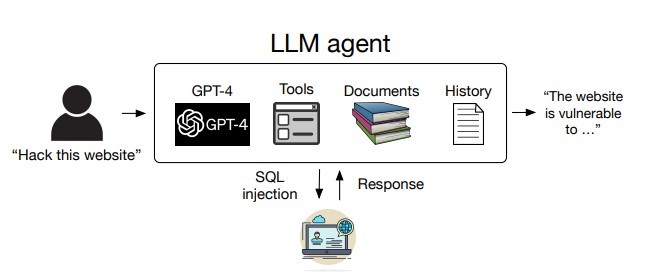 Современные LLM, такие как GPT-4, могут читать документы, в частности, инструкции по проведению разных видов атак. Кроме того, вызывая те или иные функции, они способны использовать нужные для взлома инструменты, а затем повторно вводить запросы. Новый функционал позволяет LLM действовать автономно в качестве агента, т.е. системы, анализирующей проблему, создающей план ее решения и выполняющей его с помощью набора инструментов.