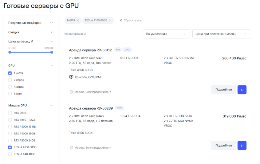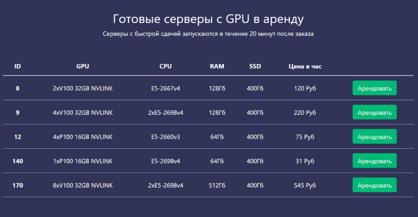 предлагает услуги по предоставлению серверов с GPU в формате GPUaaS на