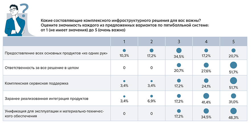 Табл. 2. Значимость составляющих комплексного инфраструктурного решения