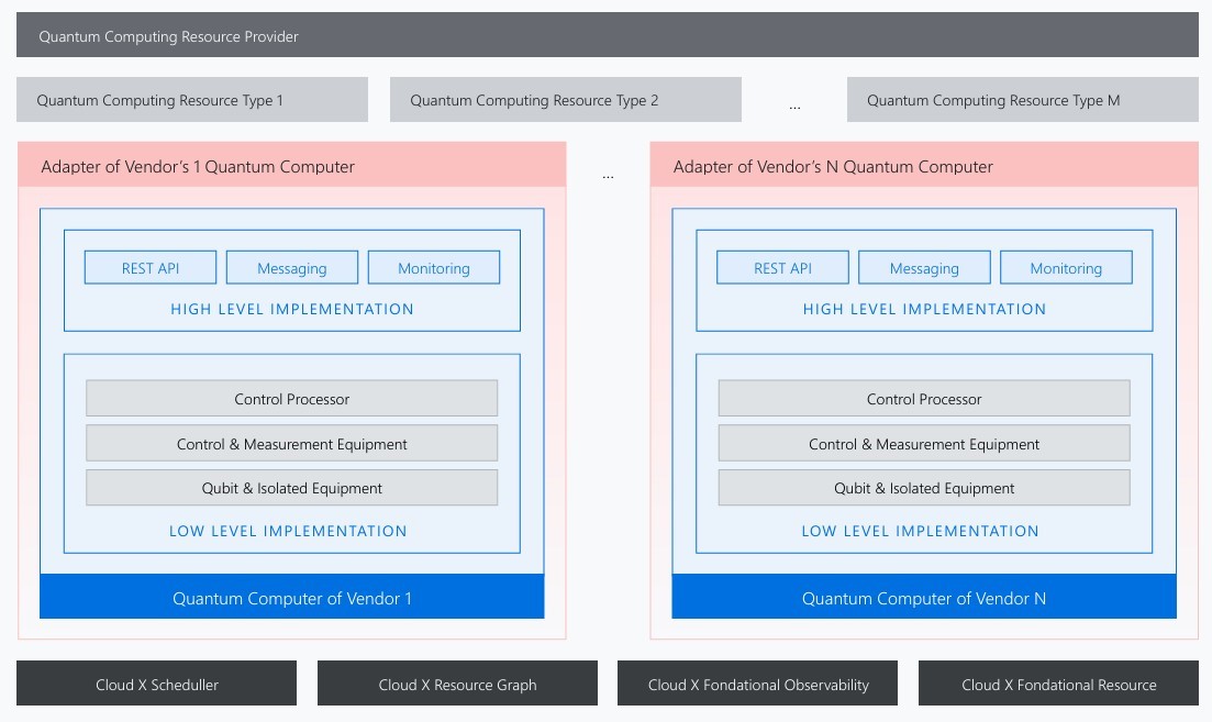 В проект заложена возможность использовать для квантовых вычислений любые платформы. Cloud X предлагает многоуровневую архитектуру, разделяющую низкоуровневые аппаратные компоненты (кубиты, контрольно-измерительное оборудование, управляющие процессоры) и высокоуровневую программную среду с REST API, обменом сообщениями и мониторингом (рис. 3).