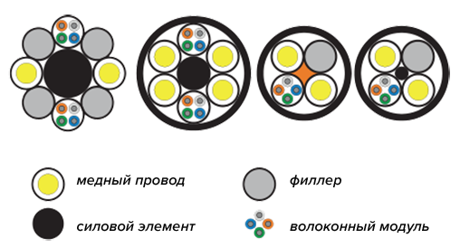 Рис. 5. Варианты исполнения комбинированных кабелей внешней прокладки