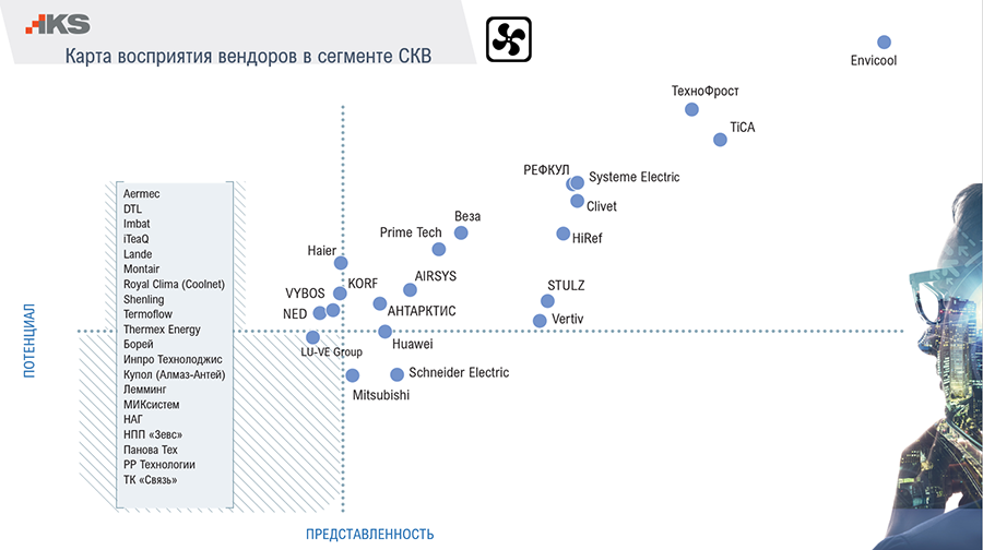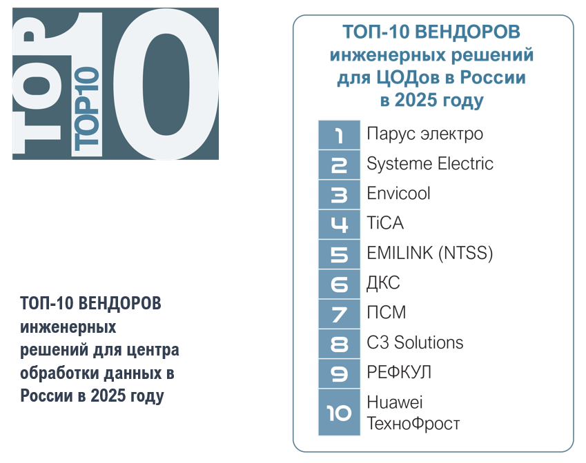 На этот раз в топ-10 вошли 11 компаний: результаты двух вендоров были столь близки, что аналитики iKS-Consulting поставили их на одно (10-е) место. Всего в топ-10 вошли семь отечественных и три зарубежных компании – все три из КНР. При этом в первой пятерке оказалось два зарубежных производителя (Envicool и TICA), а в прошлом году – только один (пятое место занимал Envicool).
