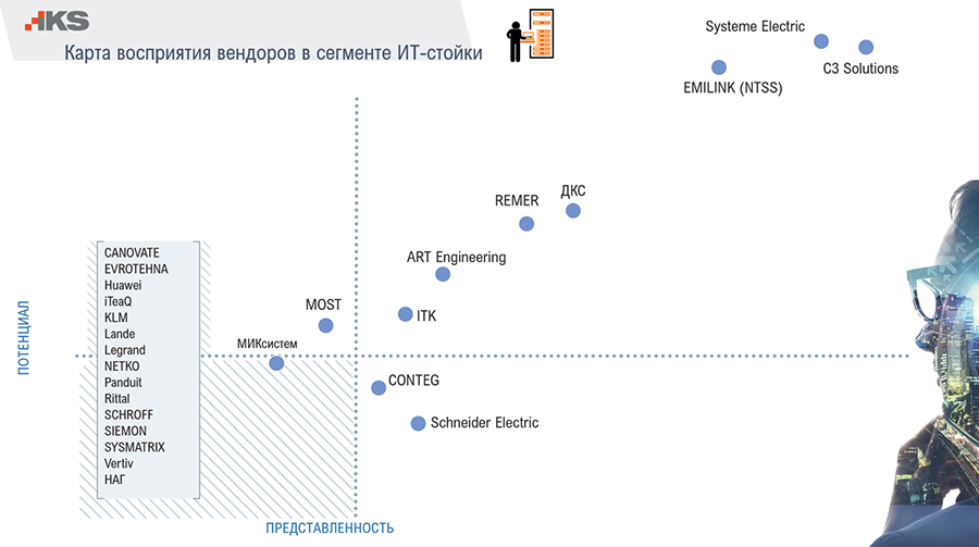 Топ-10 формировался относительно просто. Респондентов просили назвать первую десятку вендоров инженерных решений для центров обработки данных. При этом эксперты сами указывали названия компаний-производителей.