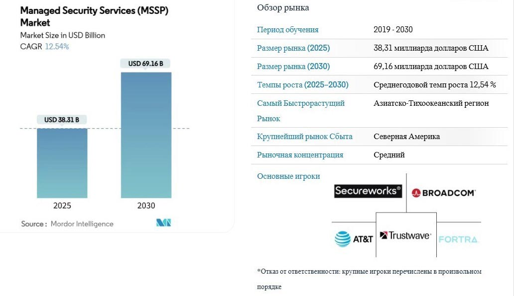 Рис. 1. Размер рынка управляемых услуг безопасности