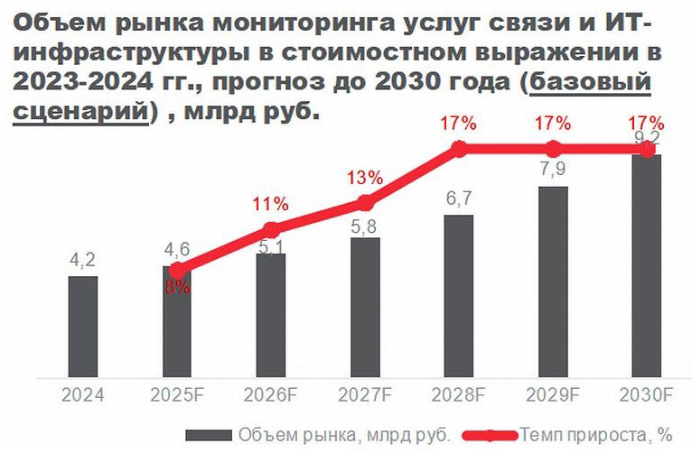 Рис. 2. Рост рынка мониторинга услуг связи и ИТ-инфраструктуры