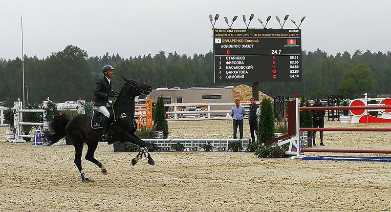 – Мы пойдём с конем по полю вдвоем, – пела на церемонии награждения победителей Чемпионата России по конкуру Пелагея. Хором подпевал переполненный манеж конного клуба Нorseka sport. Несмотря на дождливый день, народу собралось много, на трибунах нет свободных мест. Конный спорт не обласкан телевидением и СМИ, но поклонники у него есть. Лошади — это красиво. Кроме того — элитарно. Даже покупка не самой породистой лошади обойдется в копеечку, а еще надо платить за тренеров, экипировку и место на конюшне, стоимость которого сопоставима с арендой однокомнатной квартиры в Москве. И не дай бог животное заболеет. А тут еще конкур, самое престижное направлению конного спорта.