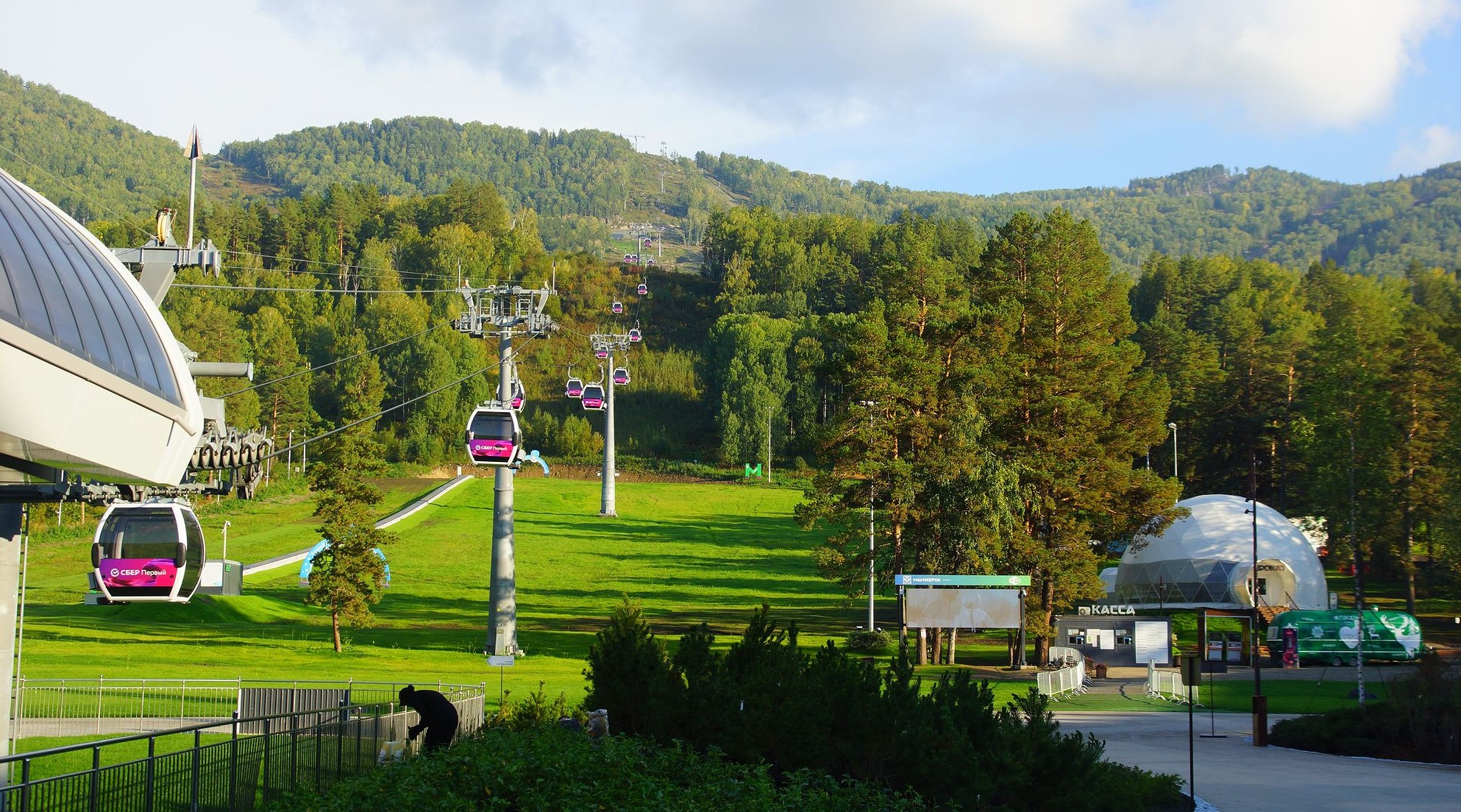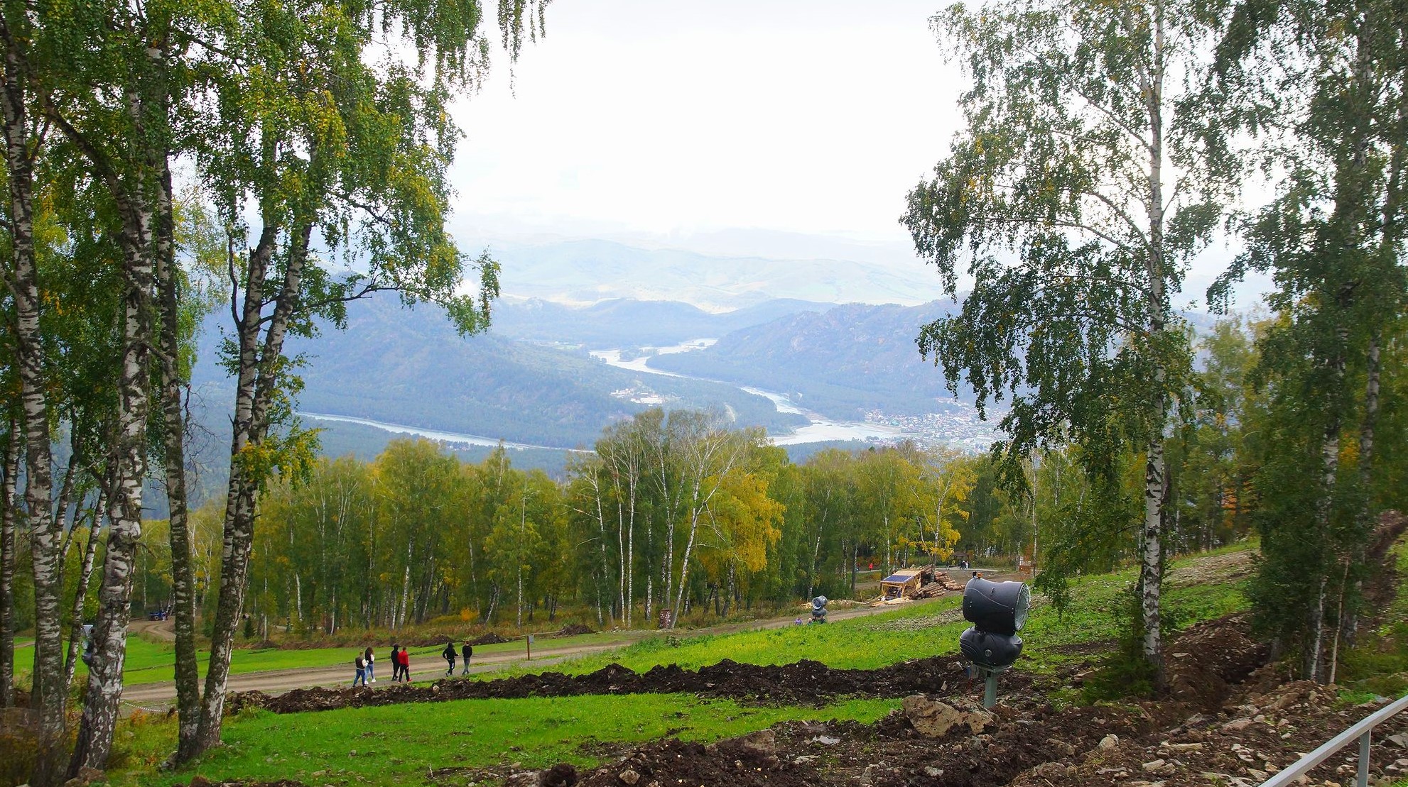 Ждут начала сезона снежные пушки, достраиваются лестницы и павильоны, есть чувство незавершенности, но в целом в парке «Хранитель Большого Алтая» хорошо, особенно когда любуешься панорамой долины и петляющей внизу Катуни.