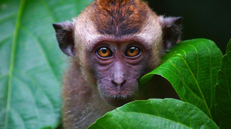 Другие забавные обезьяны — макаки-крабоеды, сидели на берегу, периодически с опаской вытаскивая какие-то корни из воды. Опасаться есть чего — крокодил может подкрасться совсем незаметно.