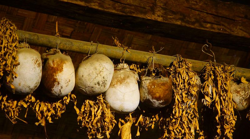 Отрезанную голову высушивают и добавляют в коллекцию, хранящуюся под крышей. Потомок утверждал, что в его племени убивали только воинов-врагов. В других племенах не были столь разборчивыми — в зачет при инициации мальчика годились женские и даже детские головы.