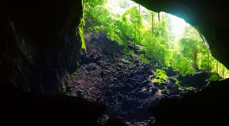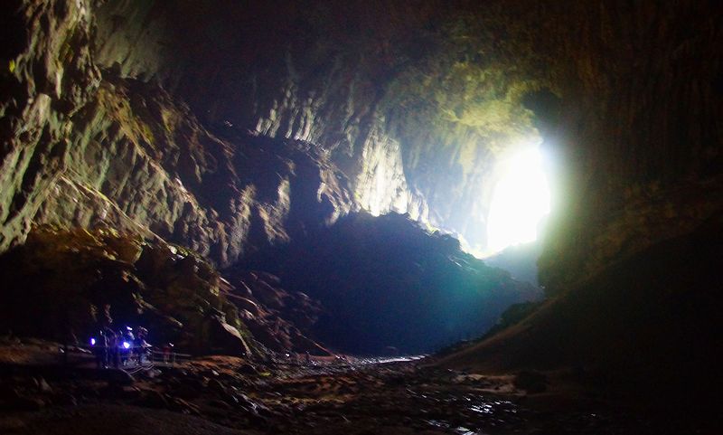 Огромные подземные залы, сталактиты и сталагмиты. В дальнем углу выход в окруженную трехсотметровыми скалами воронку шириной с километр, с тропическим лесом на дне. Это так называемый «Эдемский сад» — почти непроходимый путь в «рай» лежит через темные подземелья «преисподней».