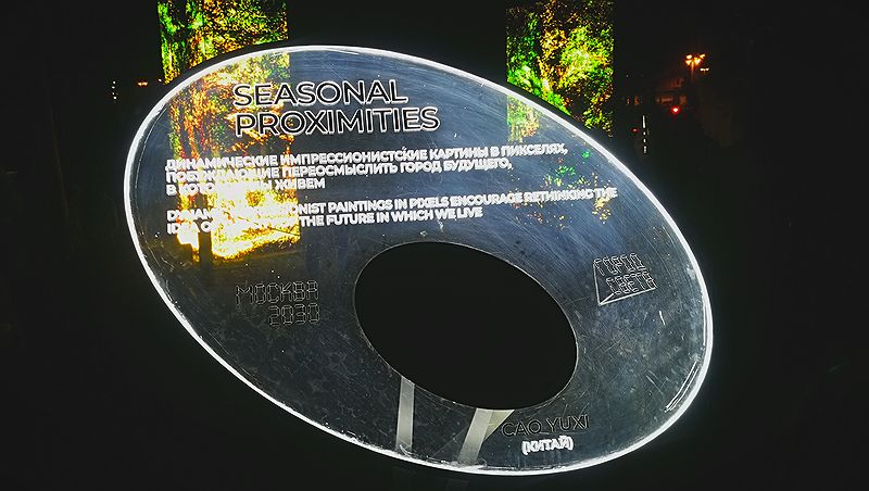 Культура будущего – мультимедийный сплав реального и виртуального мира, основанный на цифровых технологиях. Это, в буквальном смысле этого слова, ярко продемонстрировали арт-объекты, разбросанные по парку. Например, в инсталляции Seasonal Proximities («Сезонная близость») китайского медиа-художника Као Иукси среди живых деревьев парка размещены светящиеся квадратного сечения колонны, на поверхностях которых плавно движутся изображения леса, выполненные в стиле импрессионистов.