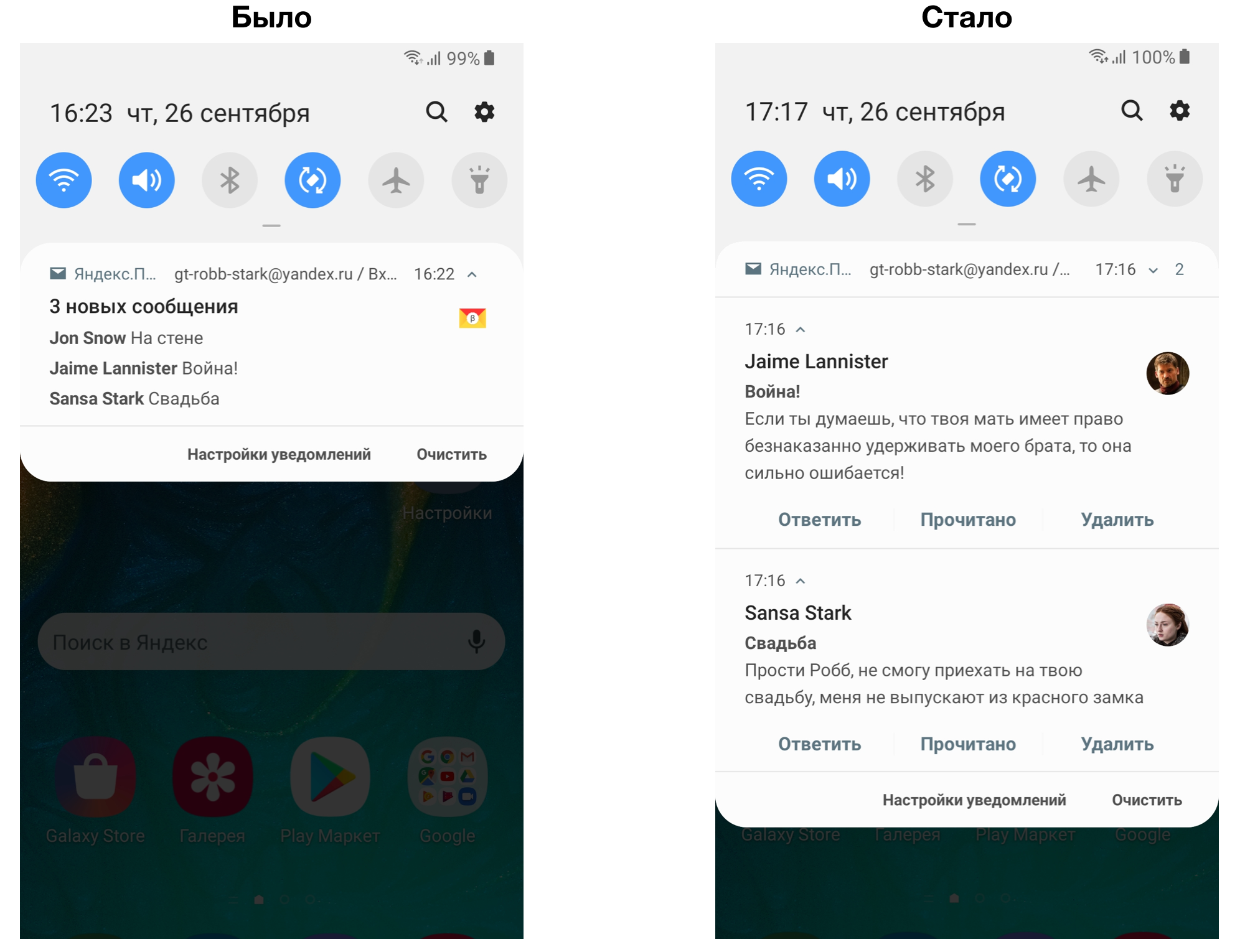 Пуш-уведомления Яндекс.Почты стали интерактивными