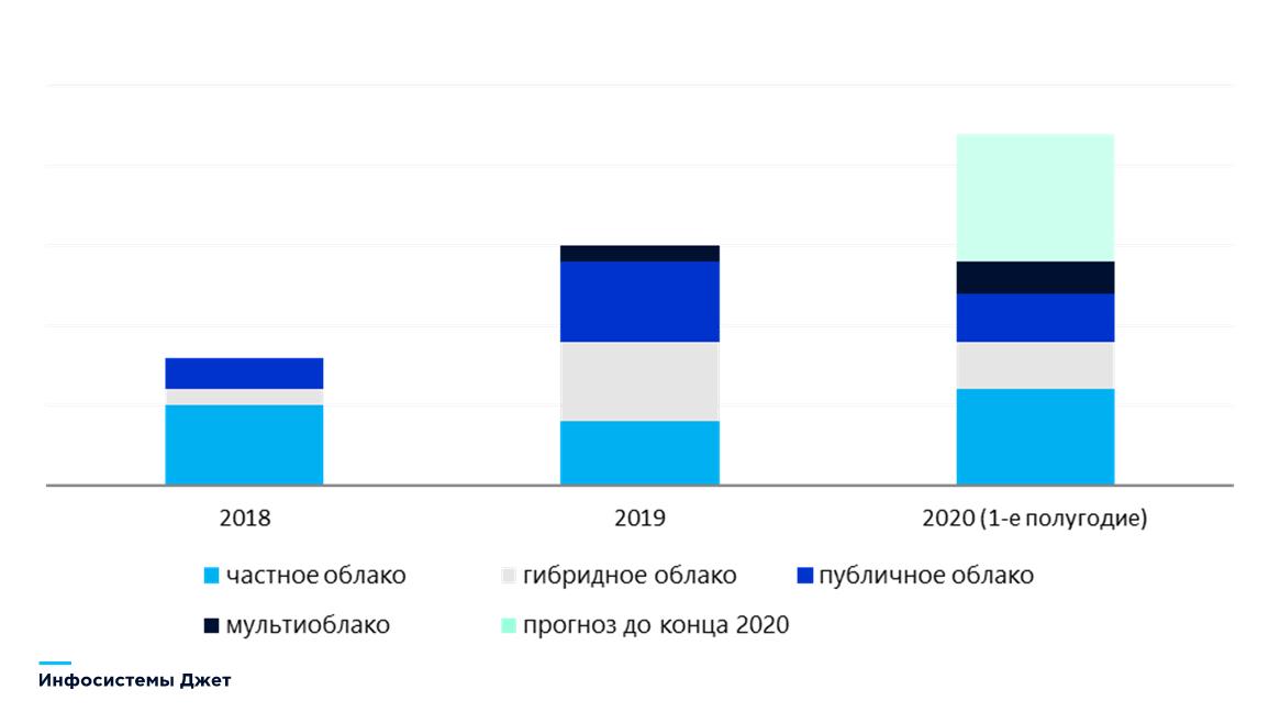 Что касается проектов гибридной и публичной облачных моделей, по прогнозам компании «Инфосистемы Джет», их число к концу 2020 года увеличится и окажется сопоставимым с результатами 2019-го.
