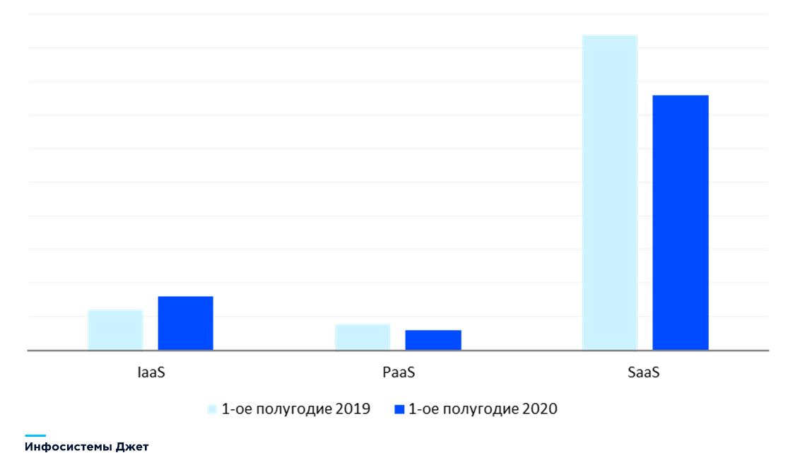 Во время пандемии облачные провайдеры сообщали о росте интереса к своим услугам. Однако по факту выявлена не столь однозначная картина. В частности, по направлению SaaS даже зафиксировано падение: снижение на 20% относительно аналогичного показателя 2019 года. По направлениям IaaS и PaaS столь заметных изменений спроса не случилось. В сфере IaaS зафиксирован рост. Во время первой волны пандемии он прогнозировался многими аналитиками в связи с тем, что в то время российские компании были вынуждены искать альтернативы наращивания вычислительных ресурсов и облачные модели позволяют быстро сделать это.