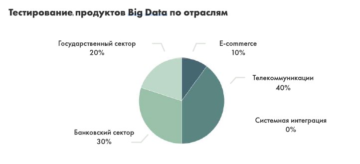 Наиболее востребован этот вид тестирования в секторе телекоммуникаций: к нему принадлежит 40% тех участников опроса, которые пользуются услугой. Опыт тестирования продуктов Big Data имеется у 66% респондентов, работающих на отечественном рынке телекоммуникаций.
