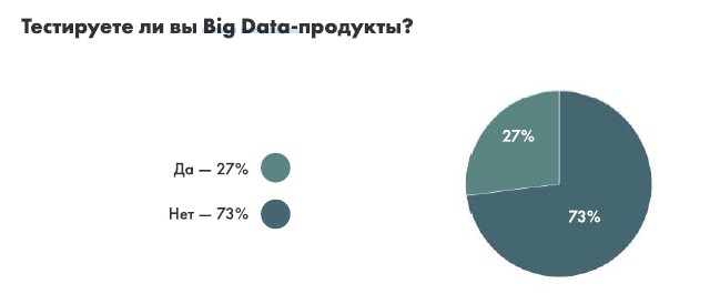 Проведенный опрос показывает, что тестирование продуктов Big Data все еще является не слишком популярной в России услугой: ею пользуются лишь 27% от общего числа респондентов.