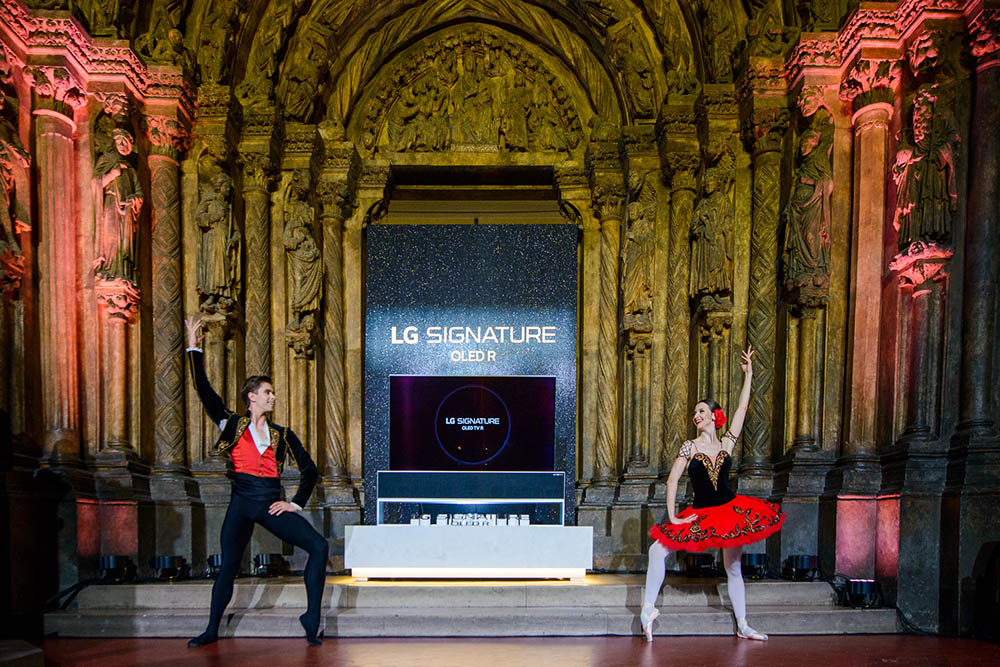 Компания LG Electronics провела в Государственном музее изобразительных искусств имени А. С. Пушкина мероприятие, представившее первый в мире сворачивающийся телевизор.