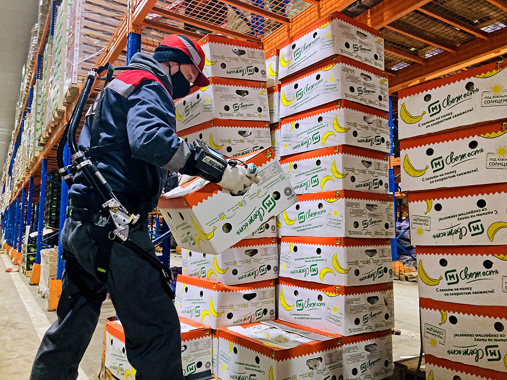 Розничная сеть апробирует промышленный экзоскелет в логистических операциях при отборке товаров. Решение может компенсировать около 20% нагрузки для сотрудника при подъеме тяжелых грузов, увеличить индивидуальную работоспособность до 10% и улучшить условия труда.