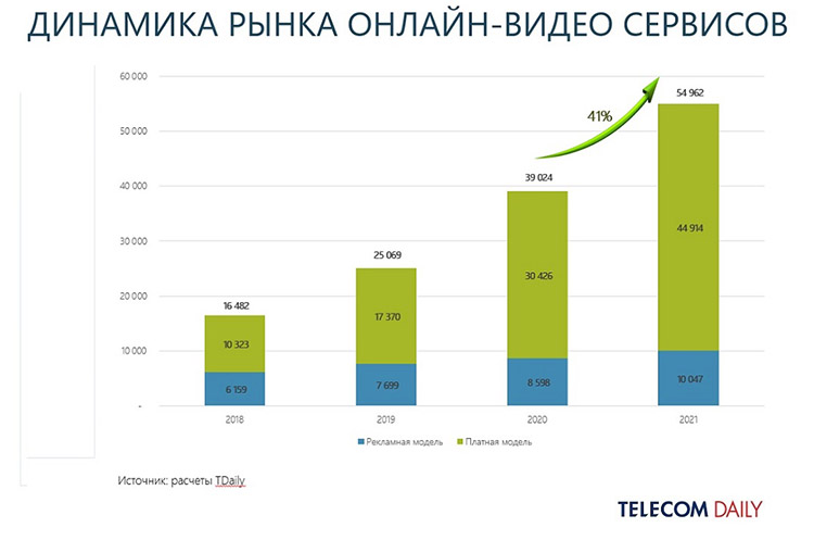 Такие данные содержатся в отчете TelecomDaily «Рынок онлайн-видео 2020-2021».