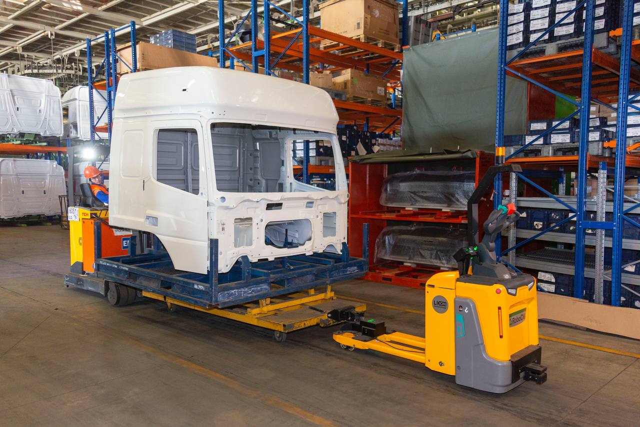 На автомобильном заводе КАМАЗа ввели в промышленную эксплуатацию два автономных робота-погрузчика, обеспечивающих доставку кабин на главный сборочный конвейер.