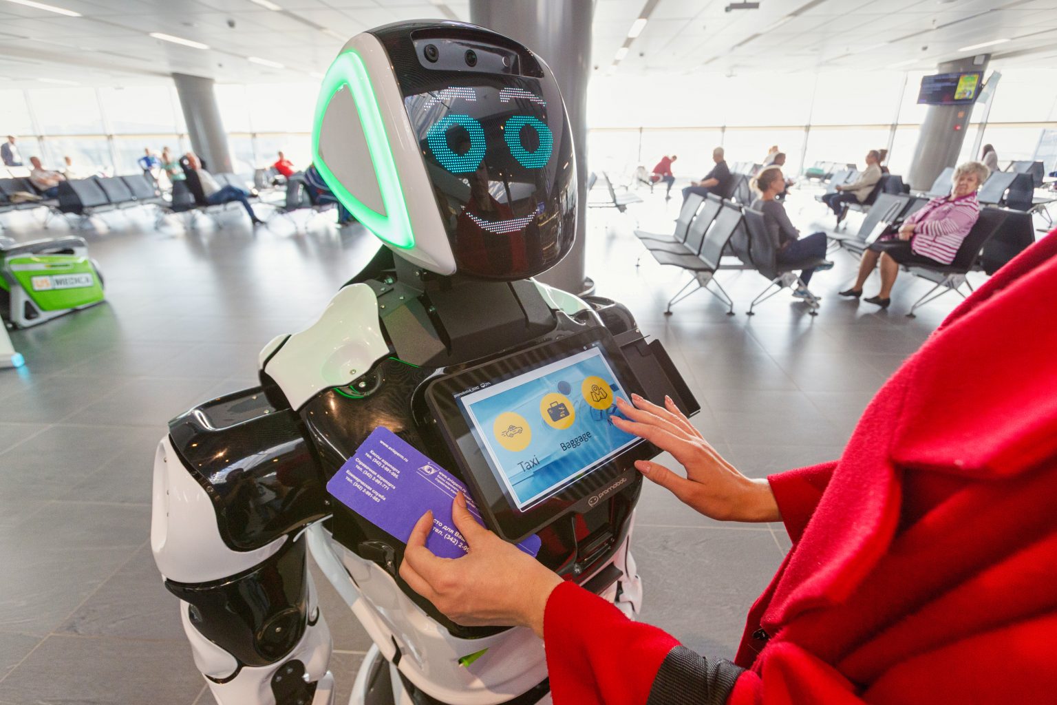 Недавно в Пермском аэропорту «Большое Савино» начал работать механизированный сотрудник от компании Promobot. Робот модели Promobot V.4. будет общаться с людьми и отвечать на их вопросы, облегчая работу сотрудникам аэропорта.