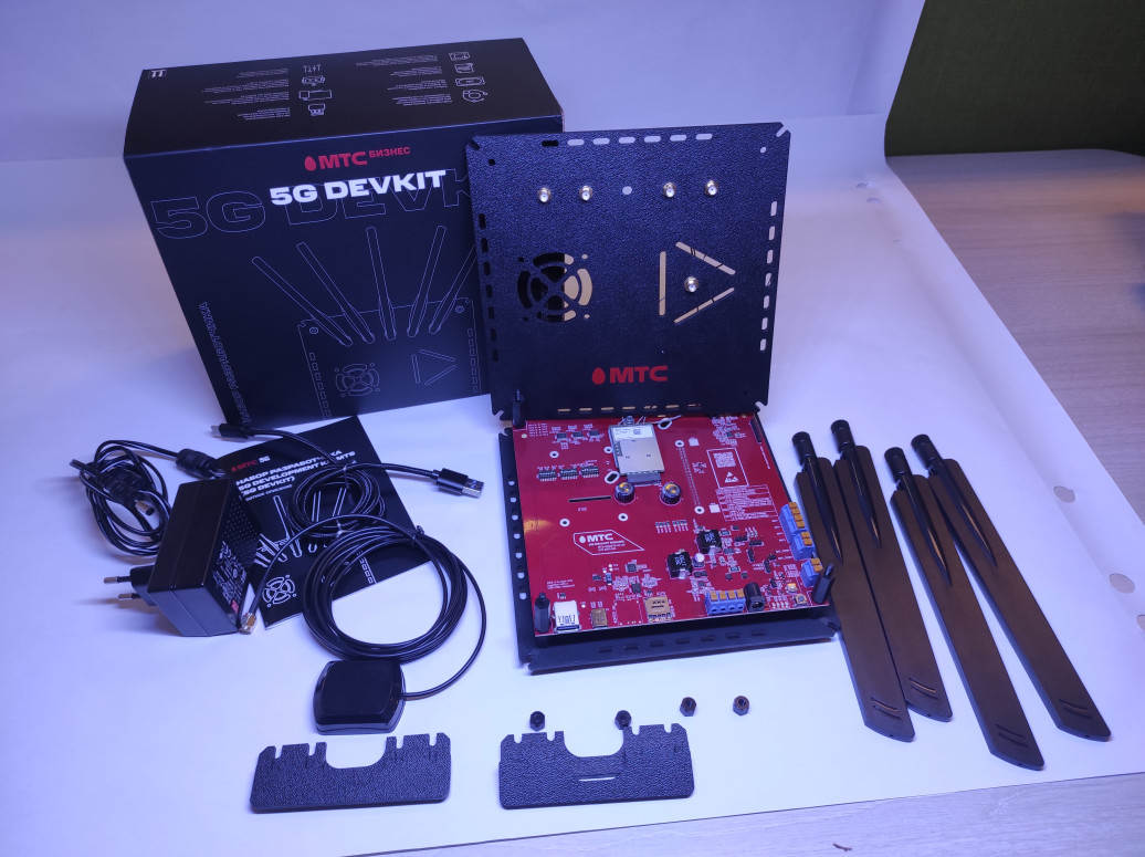 В комплект «коробочного» комплекта 5G Development Kit входит отладочная плата 5G DevKit Board с корпусом, радиомодуль 5G и LTE, комплект антенн, SIM-чип, кабельные сборки, источник питания, документация, трафик 5G и программное обеспечение.