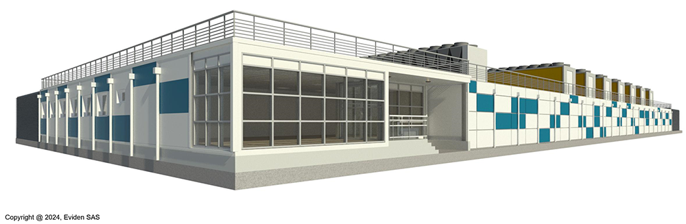 Согласно сообщению Eviden, дата-центр объединит 50 готовых и взаимозаменяемых модулей, среди которых 20 ИТ-контейнеров, 15 контейнеров подачи энергии и 10 логистических контейнеров (холл, мастерская, склад и т. д.) площадью более 2300 м², объединенных в полноценный дата-центр «под ключ».
