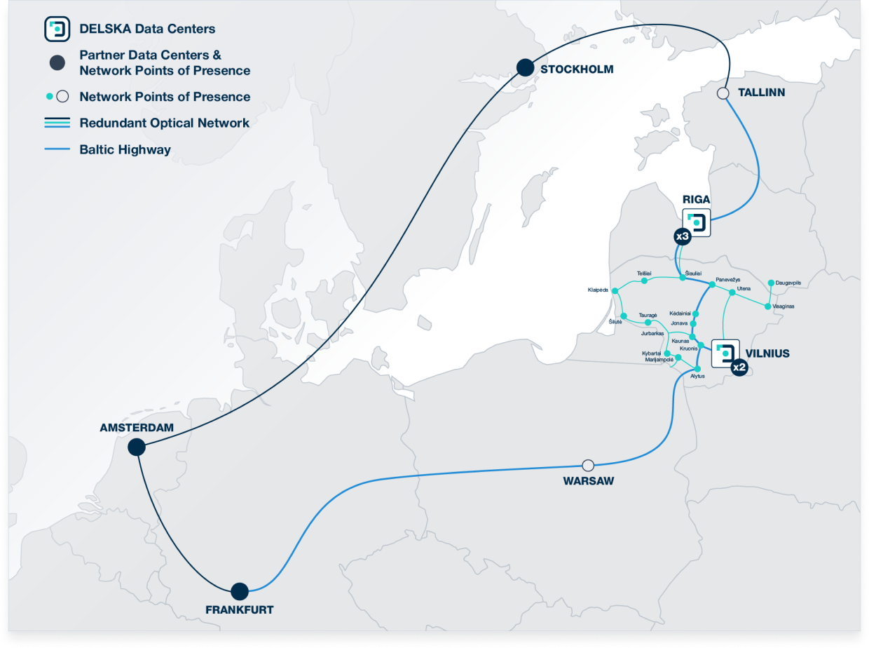 По данным Delska, объединенный бренд владеет в Прибалтике пятью дата-центрами: три объекта расположены в Риге и два в Вильнюсе. Кроме того, у компании есть три точки присутствия - во Франкфурте, в Амстердаме и в Стокгольме.