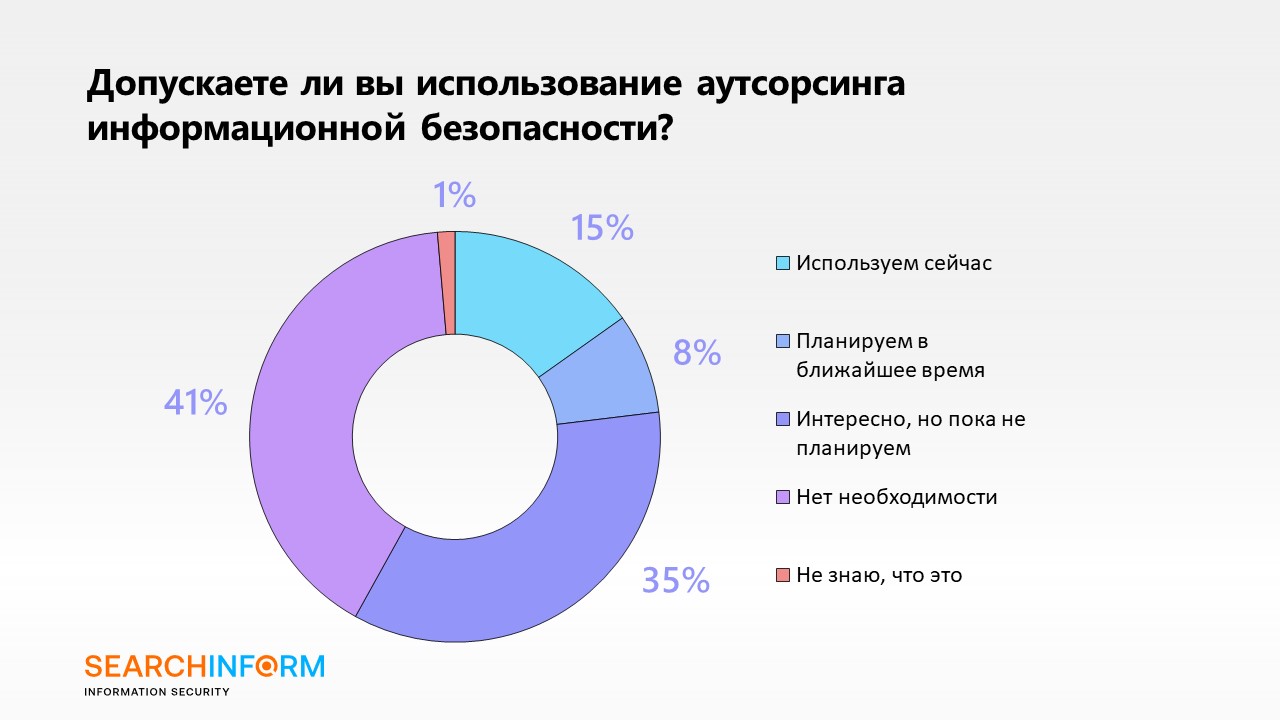 8% организаций еще не используют аутсорсинг внутренней ИБ, но планируют к нему присоединиться в ближайшее время.
