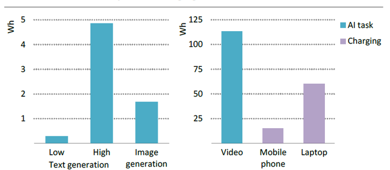 Энергоемкость различных генеративных ИИ-задач, Вт