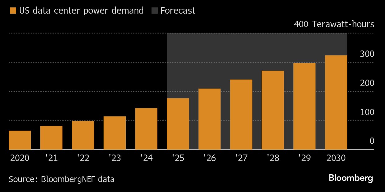 Спрос дата-центров США на электроэнергию, согласно оценке BloombergNEF, может вырасти почти в пять раз за десятилетие и к 2030 г. увеличиться примерно на 200 ТВт·ч по сравнению с уровнем 2024 г. Основной драйвер роста — расширение ИИ-инфраструктуры и гипермасштабных ЦОДов.